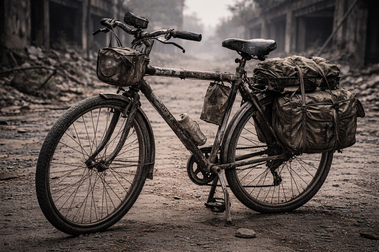 Das wichtigste Fahrzeug der neuen Welt. Fahrräder sind leise, effizient, reparierbar und benötigen keinen Treibstoff. Selbst beschädigte Fahrräder werden ausgeschlachtet, um andere am Laufen zu halten.- ideal für Boten, Scouts und leichte Karawanen