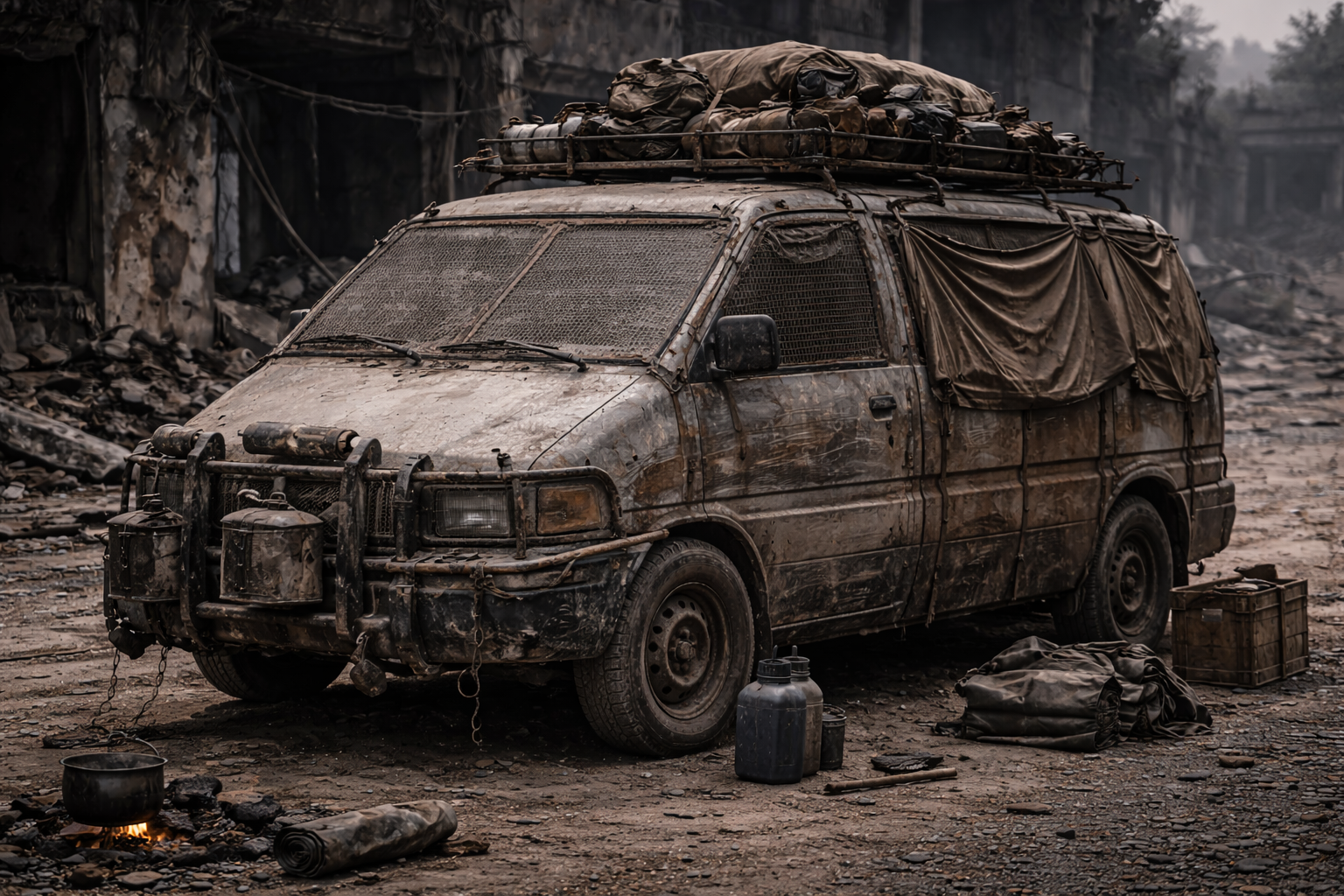 Autos existieren weiterhin, aber selten als „Reisefahrzeuge“. Sie sind oft stationär genutzt: als Lager, Barrikade, Generatorplattform oder bewegliche Schutzkiste. Bewegliche Autos sind wertvoll – aber ihr Ausfall ist katastrophal.- gut für Transport und Schutz