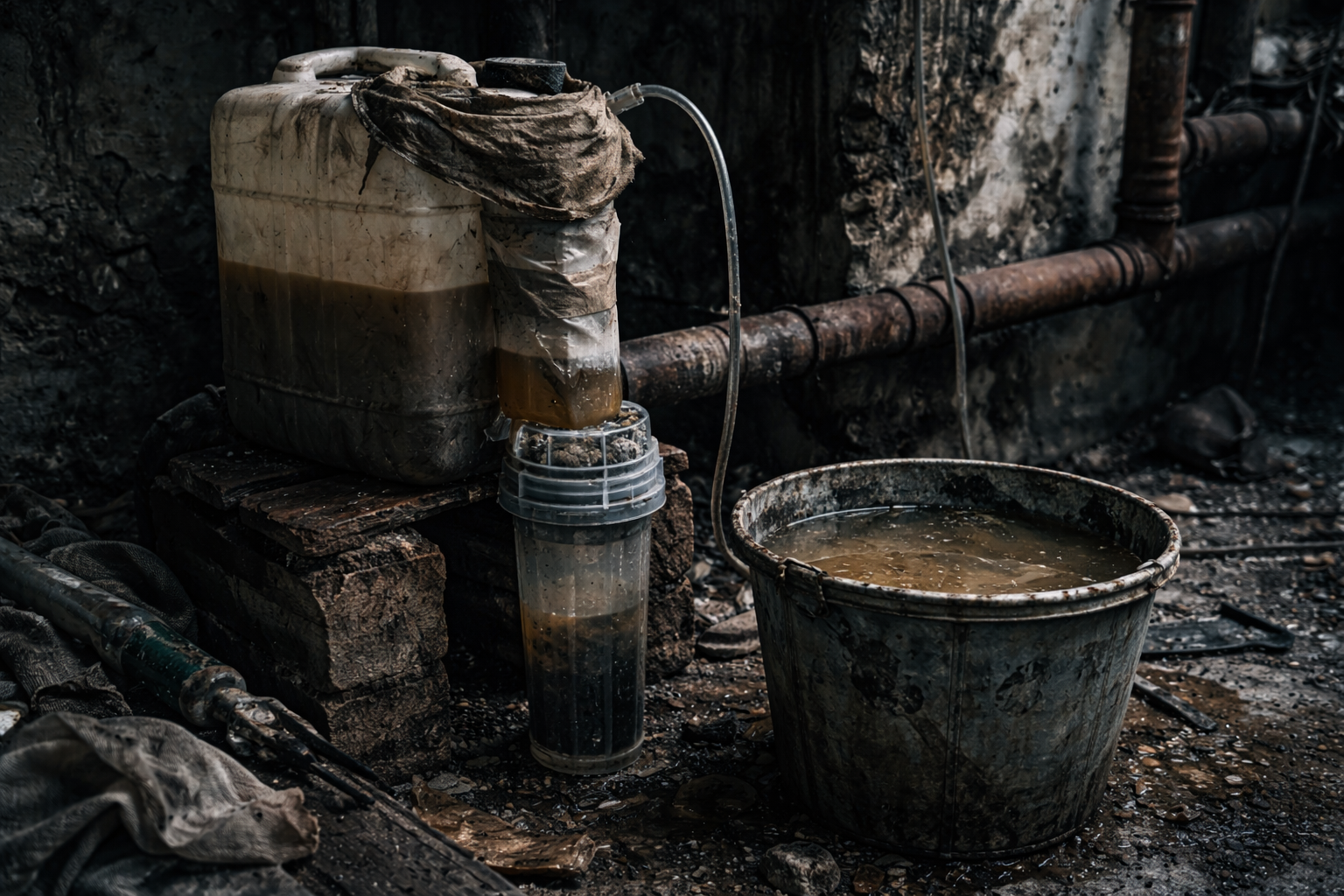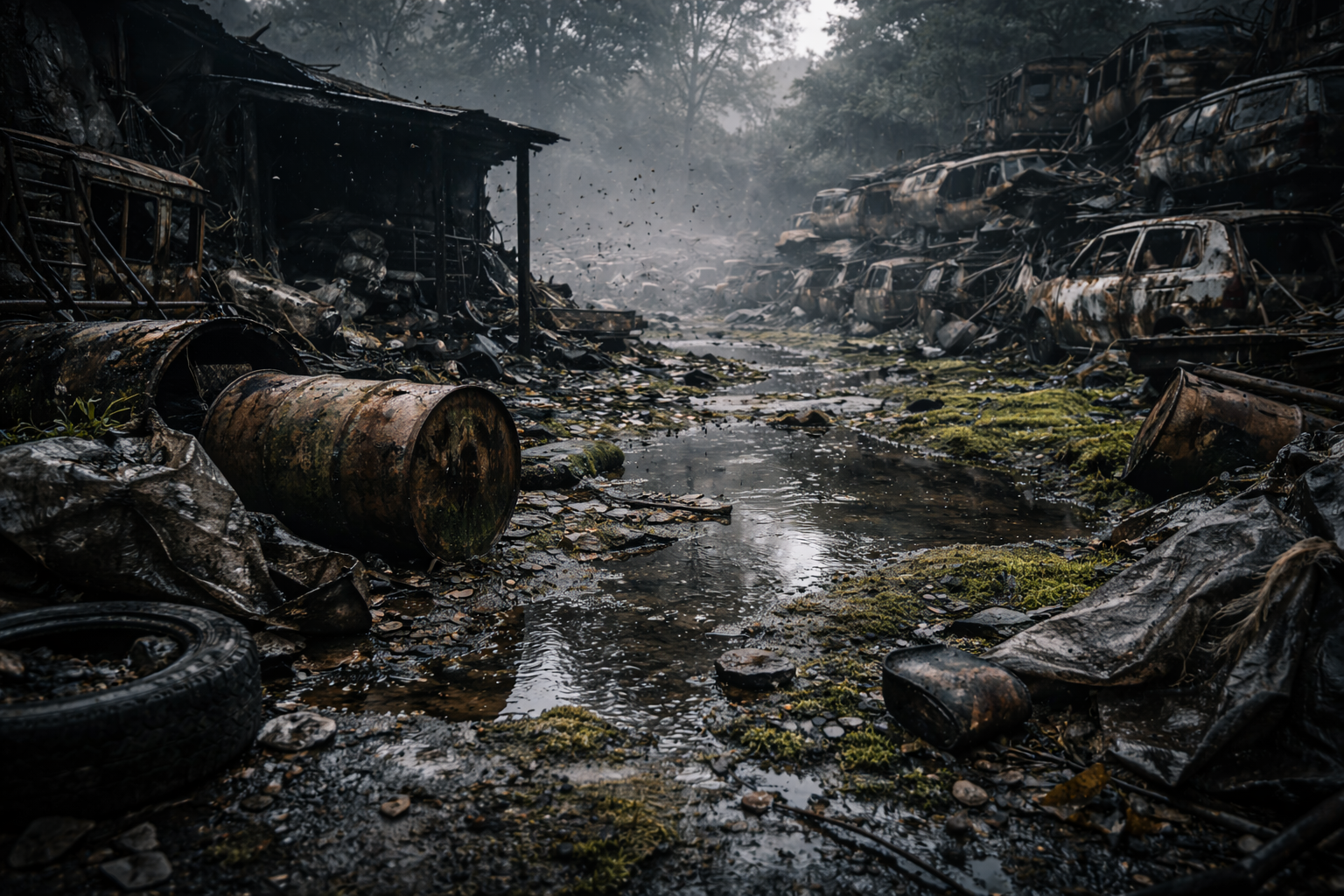 - Ruinen mit Müll, Kadavern, Abwasser