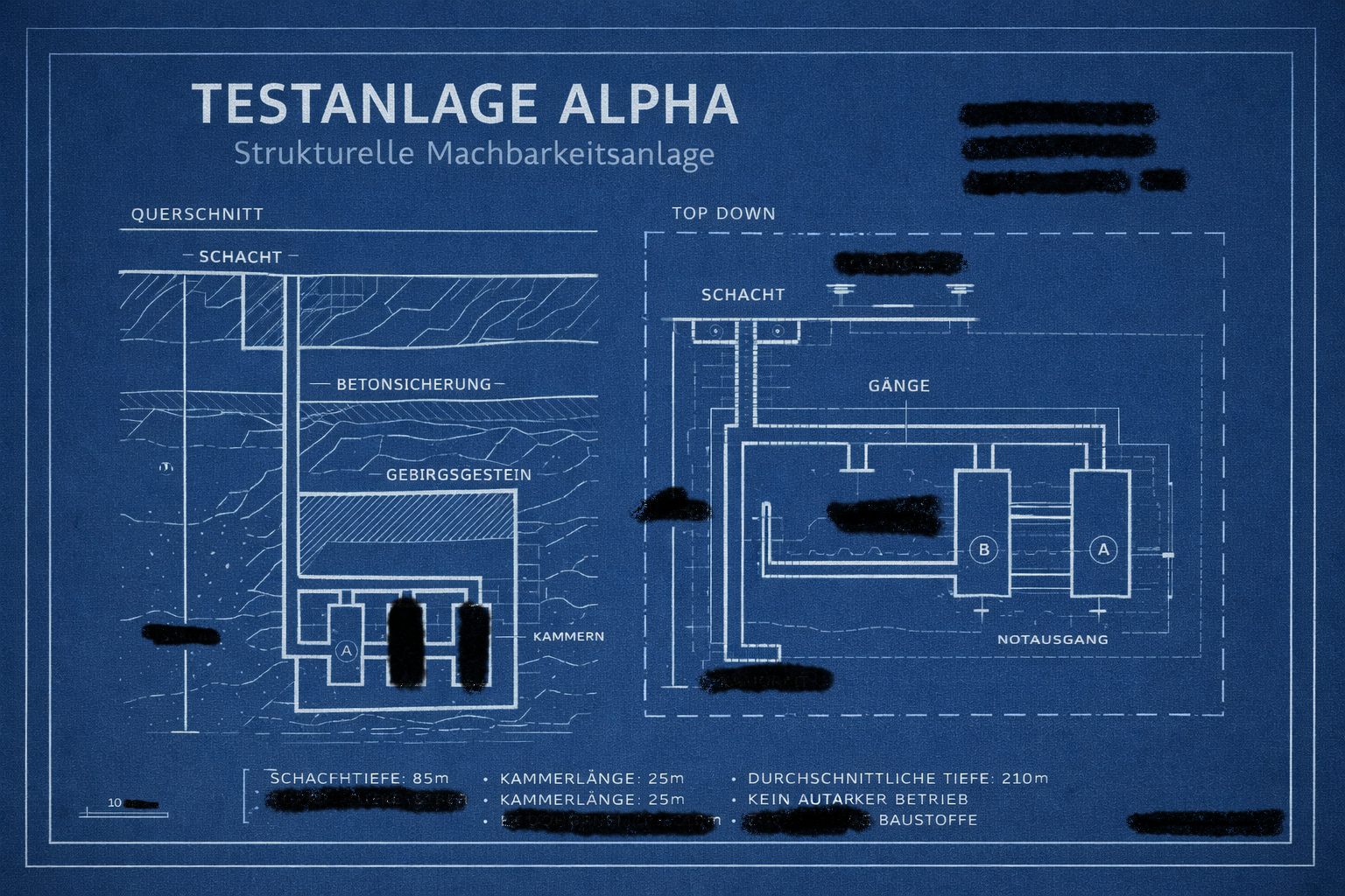 Sie diente der grundlegenden Prüfung, ob tief liegende Schacht- und Kammerstrukturenunter realen geologischen Bedingungen errichtet und stabil gehalten werden können.